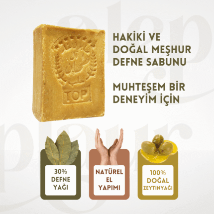 Doğal Zeytinyağı + 30% Defne Yağı El Yapımı Halep Sabunu – Tahhan Top (200 Gr)