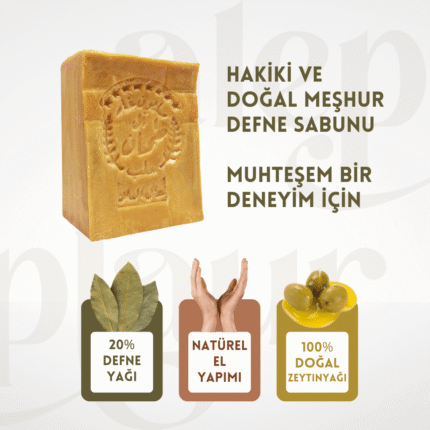 Doğal Zeytinyağı + 20% Defne Yağı El Yapımı Halep Sabunu – Tahhan Aal (200 Gr)